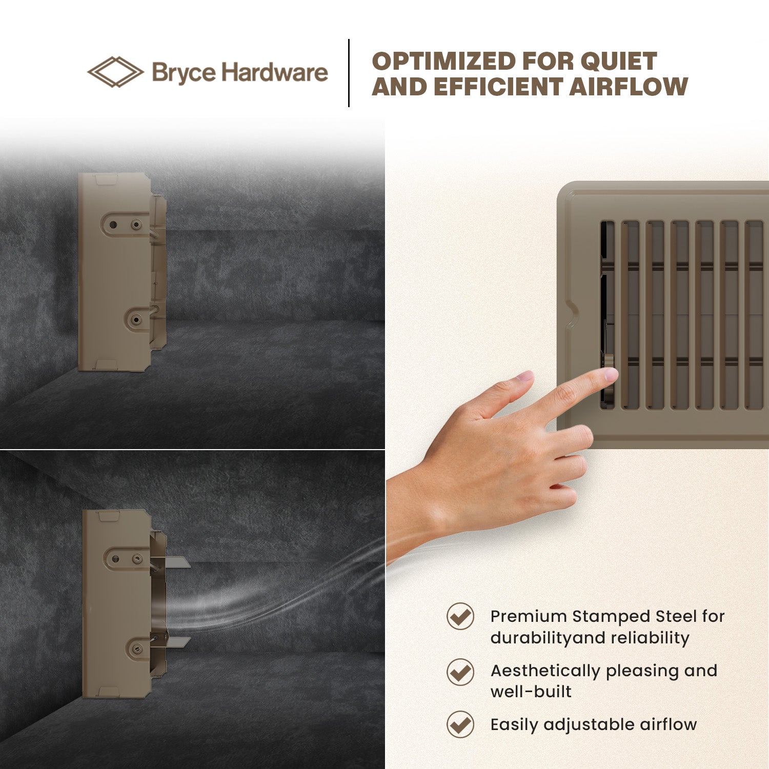 Popular search terms: "4 x 10 floor vent," "steel floor register," "brown HVAC vent cover," "adjustable airflow vent," "modern floor register," "quiet operation vent cover."